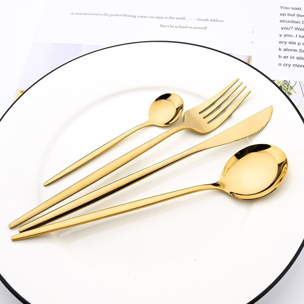 - Jogo de Talheres 24 peças: 6 facas de 22cm/40g + 6 garfos de 21.5cm/30g + 6 colheres de sopa de 21cm/40g + 6 colheres de chá de 13.5cm/10g;