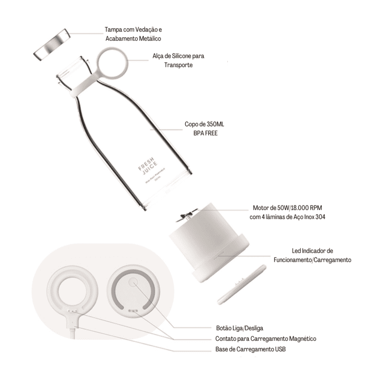 O Liquidificador Portátil e Mixer Sem Fio da Mahaos é a maneira perfeita para melhorar sua rotina de alimentação, economizar espaço e manter a organização. Ele possui capacidade para 350ml, pode ser usado como mixer além de liquidificador, é sem fio e conta com base de carregamento, além disso, é charmoso e lindo.