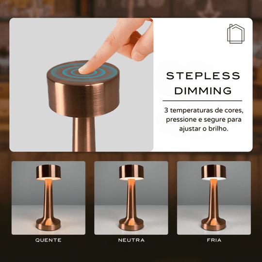 A Luminária de Mesa LED Decoração Retrô Recarregável tem função de escurecimento. Você pode escolher luz quente, luz neutra ou luz branca para fornecer brilho adicional para uma leitura confortável. O brilho mínimo também pode ser usado como iluminação noturna para ter uma boa noite de sono.